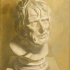 The original artwork “Seneca” was created by contemporary Austrian artist Walerij Baranow in 2023 and is available for sale online. This captivating painting, crafted in a realist style, portrays a sculpture of the esteemed ancient Roman philosopher Seneca. The delicate interplay of light and shadow bestows a sense of volume and depth, giving the impression that the philosopher is alive and pondering right before our eyes. The soft beige and golden tones of the background create a harmonious contrast with the richer shades of the skin, which heightens the perception of greatness and wisdom.