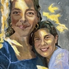 The portrait "Golden Adelia and Debora" is filled with warmth and radiance, reflecting the special bond between the artist's daughters. The painting depicts two young girls - the elder and the younger, standing next to each other and smiling with sincere tenderness. Their faces are illuminated by a soft golden light, which seems to envelop them in an aura of happiness and security.