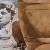 The bust of David symbolizes the eternal beauty and strength of classical art, and the everyday objects surrounding it emphasize the dialogue between the past and the present. Soft, warm colors create a cozy mood, reminiscent of the atmosphere of an Italian courtyard or garden. This work amazes with the precision of details, the skillful play of light and shadow, as well as the harmony between objects from different eras.