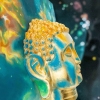 The contrast between the Buddha's eternal, calm expression and the dynamic, mysterious cosmos symbolizes the harmony of the inner world and the boundless expanse of the universe. The painting is imbued with profound philosophical meaning: it speaks of the immortality of the spirit, the search for inner peace, and the human connection with the infinite cosmos.