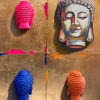 The painting by Walerij Baranow «All Buddha» is a profound, multifaceted piece executed in mixed media (plaster, oil, gold leaf/wood), exploring themes of spirituality, enlightenment, and their perception in a modern context. The work combines traditional symbols with a bright, pop-art aesthetic.