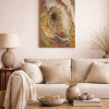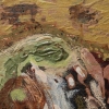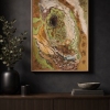 References to migration and ancient animals, such as the bison, appear not literally but through a sense of mass, warmth, and presence. The surface holds time: layers of paint, organic shapes, and blurred edges evoke a movement that has already ended, yet still lingers.