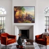 The painting is based on the 19th century Dutch painter Barend Cornelis Kukkuk, "Prince of landscape", "prince of artists". The fabulous atmosphere in the painting is created not only by the wonderful colors of the golden sunset, but also by the Rhine Valley in the rays of the sun, which is considered a romantic place with "dream paths". The landscape draws attention to the complexity of the relief, architectural masterpieces in the form of ancient fortresses and ancient castles that coexist in harmony with nature. It is a part of the UNESCO World Heritage Site. The attractiveness of the Rhine Valley, the extraordinary beauty of the landscapes with ancient castles and fortresses are glorified in myths, reflected in artistic, musical, and poetic works.: poems, songs, opera, sculptures, fountains, vintage postcards and, of course, paintings.