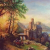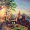 Картина по мотивам нидерландского живописца 19 века Баренда Корнелиса Куккука, «князя пейзажа», «принца художников». Сказочную атмосферу в картине создают не только чудесные краски золотистого заката, но и долина Рейна в лучах солнца, которая считается романтичным местом с "тропинками мечты". Пейзаж обращает внимание сложностью рельефа, архитектурными шедеврами в виде старинных крепостей и древних замков, которые сосуществуют в гармонии с природой. Это частичка Всемирного наследия ЮНЕСКО. Привлекательность долины Рейна, необыкновенная красота пейзажей со старинными замками, крепостями воспета в мифах, нашла отражение в художественных, музыкальных, поэтических произведениях: стихи, песни, опера, скульптуры, фонтаны, старинные открытки и, конечно, картины.