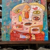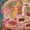 Before us is an expressive and bright portrait, executed in the style of modern naive or abstract art. The character's face occupies almost the entire space of the canvas and resembles a mosaic mask, composed of different fragments and emotions. Each element of the face seems to have its own little character hidden in it: the eyes differ in shape and expression, the mouths and nose are located asymmetrically, creating a sense of internal diversity and duality of the soul.