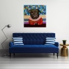 This painting can be hung on the wall of your apartment, house, office, restaurant, or hotel and will be a wonderful decoration for your interior. You can buy online the artwork "CEO in Pug corporation" measuring 100 x 100 cm with free shipping to your location!
