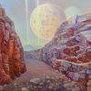 The painting was created based on impressions from a journey across the Kola Peninsula, where an involuntary feeling of taking root in this land arose. And the imagination flew deep into the millennia, envisioning the legendary Hyperborea with its active pyramids and three other companions of our Midgard-Earth.