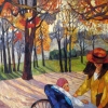 The painting “Walk in the Autumn Garden” by artist Andrey is a lyrical and warm depiction of an autumn landscape, filled with light, air and a sense of tranquility. The canvas captures a moment of everyday life - a young mother walking with a stroller in an autumn park, but it is precisely in this simplicity that the special charm of the painting lies.