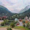 Karachay-Cherkessia. Ski resort. North Caucasus. Painting, canvas on stretcher, oil. Original painted artwork.