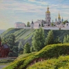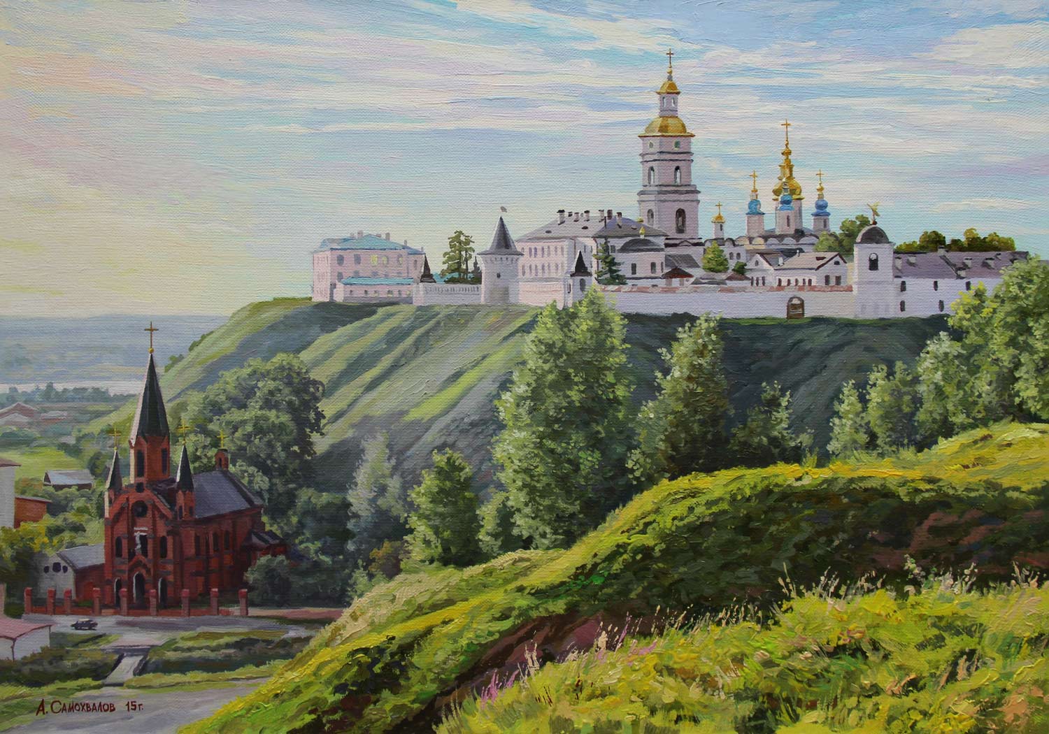 A painting created with oil on canvas. The canvas is stretched on a frame.