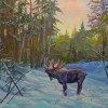 Painting. Canvas stretched on a stretcher. Oil painting. Realism. Animal painting, landscape.