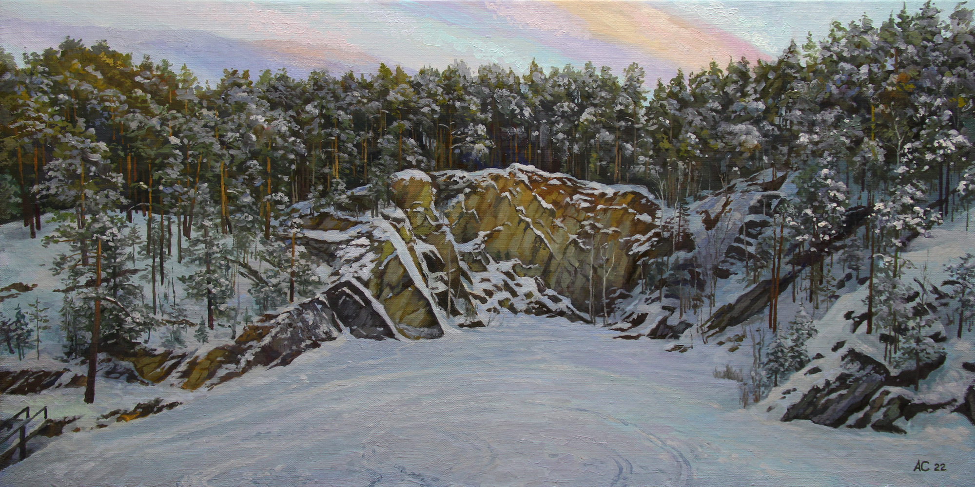 An original oil painting on canvas. The canvas is stretched over a stretcher frame. Size 40x80 cm. 2022. I hope viewers will see and feel the beauty of the Ural nature.