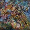 Original painted artwork. Canvas glued onto hardboard. Abstraction.