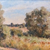The painting conveys the atmosphere of a sunny and warm day, filled with the quiet harmony of nature. Light, airy brushstrokes convey a cloudy sky, saturated with soft sunlight. The path, leading the gaze into the depths of the landscape, creates a sense of perspective and inviting depth. Trees with dense foliage are painted with a subtle sense of texture and dynamics, their lush greenery harmoniously echoes the warm shades of summer grasses. The main dynamics are created by the play of light, which falls in subtle highlights on the foliage, emphasizing the beauty of the natural state of nature. This canvas fills the soul with peace and nostalgia for summer days.