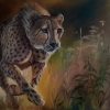 This painting depicts a cheetah in dynamic motion, running swiftly through the dense grass of the savannah. His graceful posture and expressive gaze emphasize the drive, speed and power — qualities for which this amazing animal predator is famous.