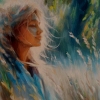 Напишу на заказ!!!I'll send you an order!!! The painting depicts a woman with her eyes closed, standing in the bosom of nature. She seems to be enjoying the moment — the wind blows her hair, the sun's rays and green leaves play around. The composition and color scheme convey a sense of peace, freedom and harmony with nature.а картоне...