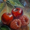 The painting «Натюрморт» by MikhalevART is an exquisite tribute to the beauty of nature. In this intimate piece, the artist warmly conveys the juiciness of ripe fruits. Cherries with firm stems and bright green leaves sit alongside velvety raspberries. The image is so realistic that it feels as if you can smell the scent and feel the coolness of a summer garden.