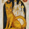 Each detail of the painting is laced with profound metaphors, from the intricate patterns on the cat's fur to the elegant architectural shapes of the castle. The cat represents wisdom, independence, and mystique, while its posture exudes calmness and confidence, inspiring those who gaze upon it. This image can be interpreted as a symbol of personal freedom, perception, and the ability to see beyond appearances.