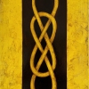 The color scheme of the artwork is rich in contrast: a vibrant yellow background, symbolizing light, life, and energy, beautifully complements the deep black, which represents mystery and the unknown. This striking contrast generates tension, encouraging the viewer to reflect on what lies beyond the visible. The golden lines, appearing almost three-dimensional, add depth and movement, creating the impression that the patterns are in constant flux, much like time itself.