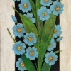 This painting features an exquisite image of forget-me-nots, which represent tenderness, memories and sincere feelings. The blue petals of the blossoming flowers contrast vividly with the deep black background, creating the effect of a luminous pattern. The bright green leaves and stems give the work a sense of freshness and life, enlivening the composition.