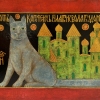 The painting’s style harmoniously blends elements of folk art with a contemporary flair, showcasing a distinctive commitment to both heritage and innovation. The cat, representing independence and mystery, illustrates the bond between the human world and the animal kingdom, while also invoking the warmth of home, wisdom, and the enigmatic nature of existence.