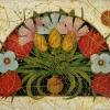 This painting is a picturesque and decorative still life with flowers in a vase, made in a mixed technique. In the center of the composition is a bright bouquet consisting of various flowers: red, blue, pink and yellow, framed by green foliage. Each petal and leaf is carefully detailed, giving the composition depth and volume.