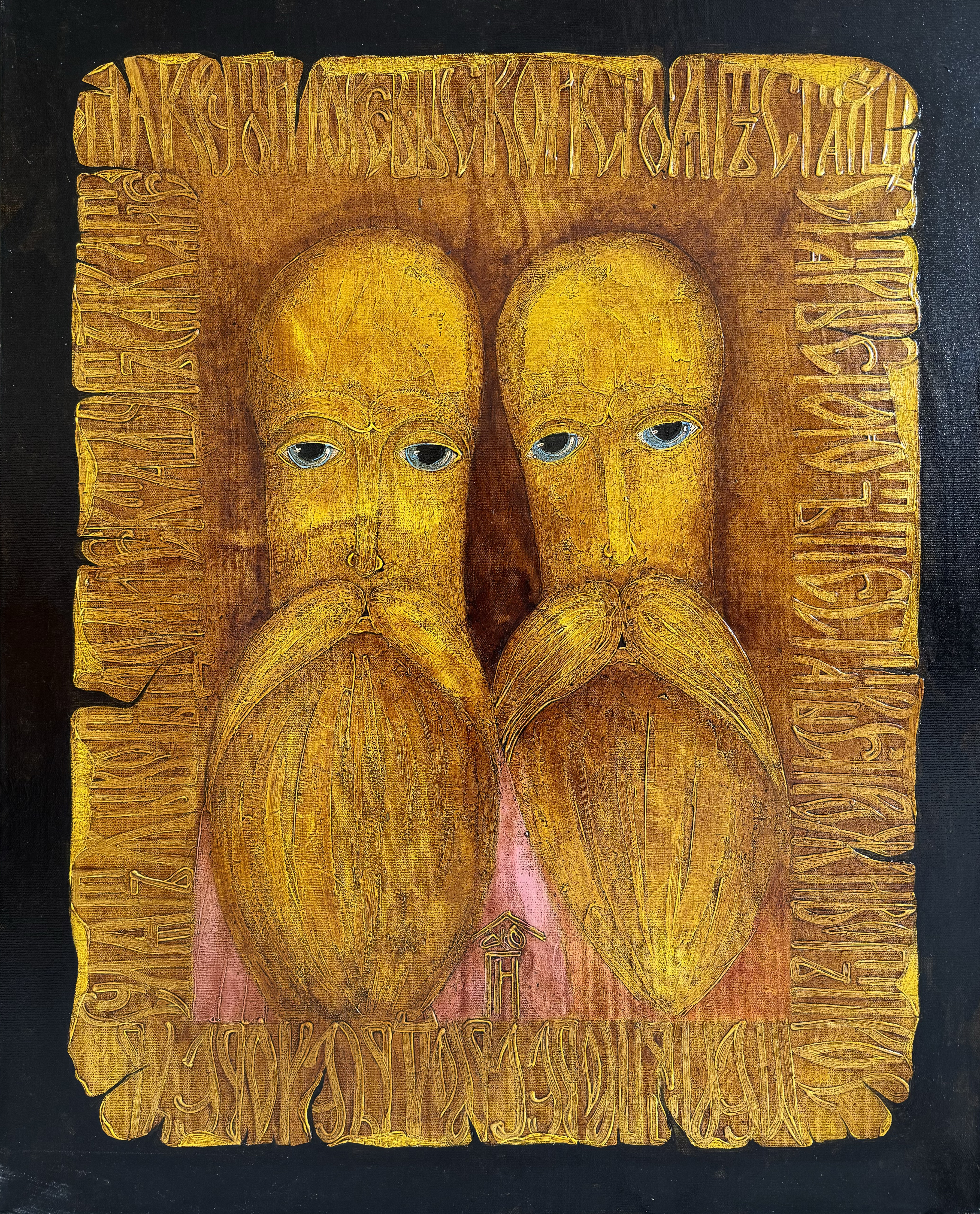 In this work, the artist wanted to capture the spirit of antiquity and wisdom contained in the images of two elders. Their long beards resemble worn scrolls of history, and their eyes are full of sadness and deep knowledge of the world they have observed for centuries. Golden-ochre tones emphasize the sacredness of the moment, creating a sense of an icon.