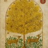 This work of art is made in a decorative style inspired by ancient traditions and the symbolism of nature. In the center of the composition rises a magnificent golden tree with a lush crown consisting of many bright leaves radiating energy and vitality. It resembles the tree of life, personifying harmony, abundance and wisdom.