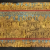 The work is done in warm shades, with an emphasis on golden and ocher tones, which reflects the title of the painting. Blue skies and red lines add dynamism and blend perfectly with the overall visual range. The outlines of buildings and architectural details are worked out with great care, which makes the work look like ancient icons or miniatures.