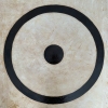 The composition evokes associations with symbols of harmony, balance and infinity. The interaction of deep black geometric shapes with a neutral, slightly aged background creates a sense of depth and philosophical understatement, opening up space for interpretation and reflection.