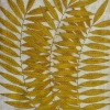 This painting depicts the branches of a plant with elongated, pointed leaves, executed in warm golden-yellow shades. The leaves are arranged in a symmetrical order, partially overlapping each other, which creates a complex, but at the same time harmonious pattern. The background of the canvas is executed in soft light beige tones, almost turning into snow-white, which enhances the contrast between the bright pattern and its surroundings.