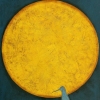 The painting features the moon, which takes up most of the composition. Its cracked and textured surface lends the image an aura of antiquity and grandeur. The deep dark background creates a sharp contrast, highlighting the glow of the central element and adding drama to the work.