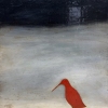 This painting is executed in a minimalist style and is imbued with deep meaning. A lonely red bird is depicted against a background of smooth transitions from dark to light shades. Its silhouette is simple, but at the same time expressive, symbolizing the fragility and resilience of life.
