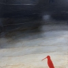 The background of the painting resembles natural textures - sand, sky and water, creating an atmosphere of infinity and freedom. The gradient, moving from darkness to light, can convey the change of day and night, deepening in thought and the transition from anxiety to calm. The red bird, appearing in sharp contrast to the calming color scheme of the background, becomes a bright accent of the composition - it attracts the eye and symbolizes loneliness, searches or hope.