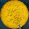 The painting features the moon, which takes up most of the composition. Its cracked and textured surface lends the image an aura of antiquity and grandeur. The deep dark background creates a sharp contrast, highlighting the glow of the central element and adding drama to the work.