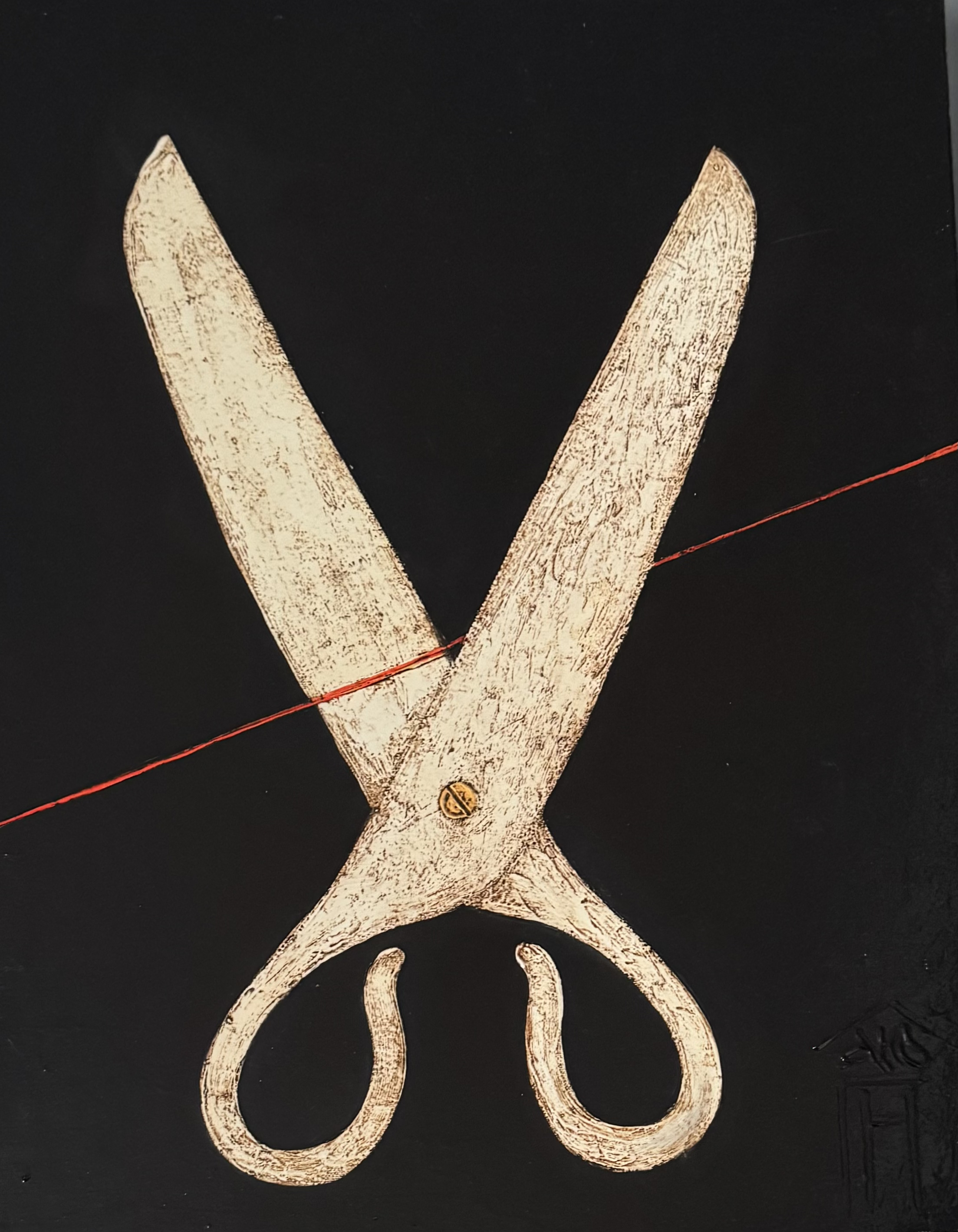This original artwork "Thread and scissors" was created by the contemporary Russian artist Vyacheslav Gayun and is available for sale online.