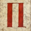 This is a laconic, but expressive image of one red letter "P" in the style of the ancient Cyrillic alphabet, written on a textured light background with artificial craquelure. The outlines of the letter are strict, massive; it seems to radiate strength and firmness, becoming a symbol of an independent part of the world. In the lower left corner is the author's amulet sign. The painting looks like an allegorical object - it can be interpreted as the beginning of a word, highlighting an important idea or as an independent protective symbol from Slavic traditions.