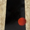 In the center of the painting is a slanted black rectangle, occupying most of the canvas, slightly offset from the center. In the lower right corner of the rectangle is a rich scarlet circle, like a planet or the sun, executed in relief and texture, like the moon at full moon. This contrasting motif is associated with mystery, space and inner strength, evoking philosophical reflections on the confrontation between darkness and light, peace and energy, the Universe and loneliness.