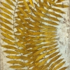 Golden, elongated leaves of rowan branches fill almost the entire canvas. They are superimposed on each other and form an uneven decorative pattern, as if created on light stone or old plaster. Light transparency of lines and tones creates the effect of lively movement, the foliage seems weightless, shimmering in the sun. The work symbolizes the generosity of nature, fertility, connection with ancestors and traditions of the Russian landscape.