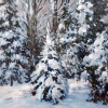 The painting depicts a winter forest, where thick spruce trees are covered with a thick layer of fresh snow, like a soft white blanket. Fragile branches are hung with snowballs, and silence seems to envelop everything around. The light falls softly, emphasizing the cold and at the same time the tranquility of this secluded corner of nature, as if time has stood still here.