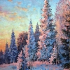 The winter forest at sunset is shrouded in magical silence and peace, where the crystal cold air caresses the cheeks, and the gentle shades of pink and lilac on the snowy branches evoke a romantic and dreamy mood. This sunset seems to tell a quiet story of endings and beginnings, awakening deep feelings of light sadness and warmth in the heart. The picture seems to invite you to think about the beautiful eternal, to open a place inside for contemplation and inner peace.