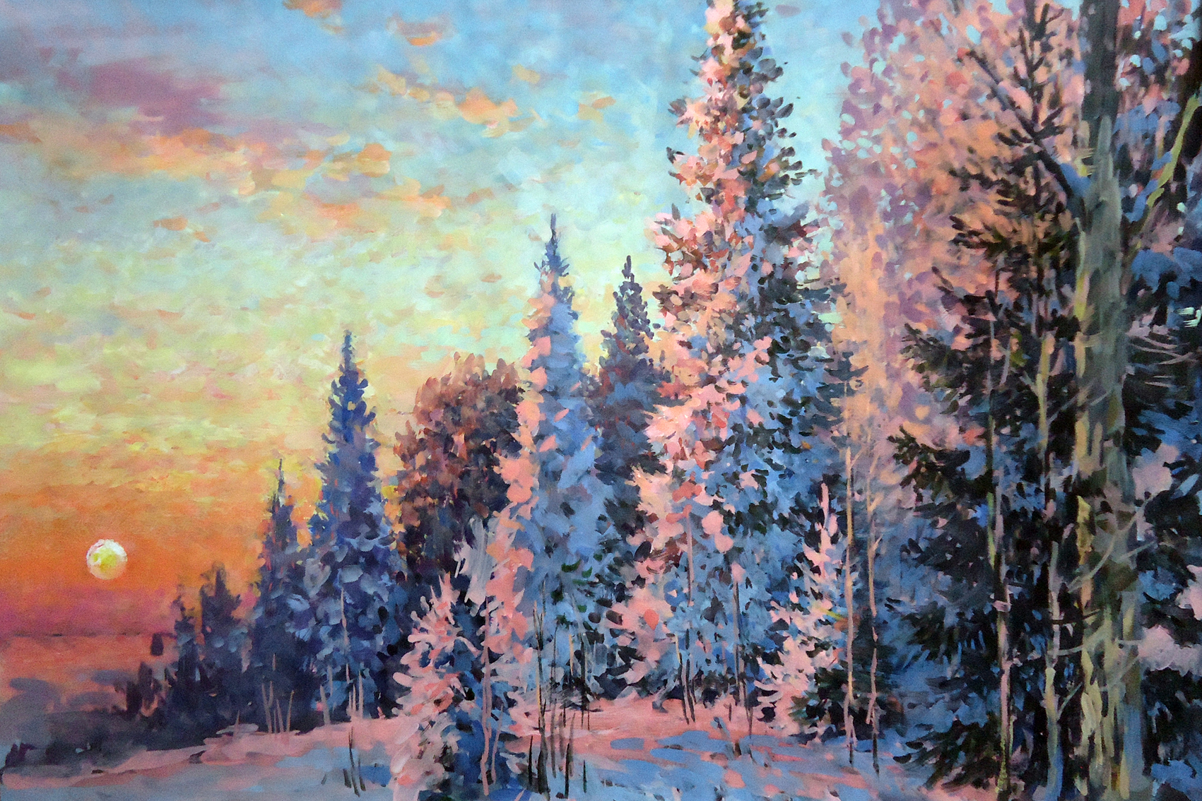 This original artwork "Winter sunset" was created by the contemporary Russian artist Boris Studentsov and is available for sale online.