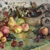 Still life with fruits tells of simple joys and the comfort of the family hearth. Ripe apples and pears exude sweet aromas of summer, and a jug with a berry branch seems to preserve memories of warm meetings and feasts. Calm muted tones create an atmosphere of gratitude and warmth, touching the soul with their sincerity and evoking a sense of peace, reminding of the importance of family and quiet moments.