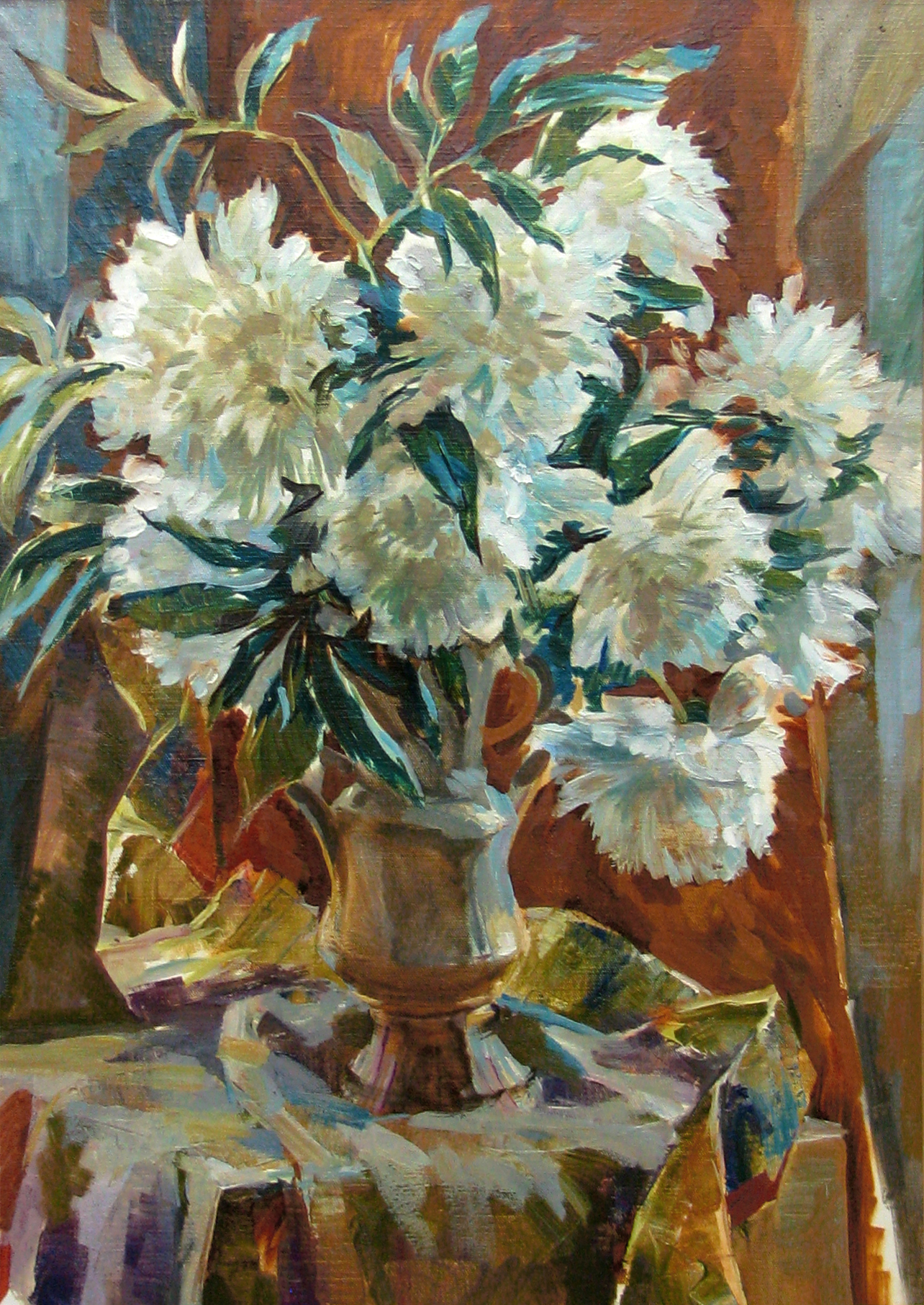 This original artwork "Peonies antique" was created by the contemporary Russian artist Boris Studentsov and is available for sale online.
