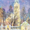 Картина Андрея Ковалевского «Собор Святых Апостолов Петра и Павла» — это поэтическое изображение величественного храма, окутанного мягким светом зимнего вечера. Художник создает атмосферу умиротворения и духовной возвышенности, где архитектура и природа сливаются в единую гармонию.