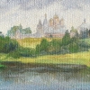 View from the dam (bridge). The monastery has a rich history, beginning with its founding by Venerable Therapont of Belozersk, the Wonderworker of Mozhaisk, in 1408. The monastery was dedicated to the Nativity of the Most Holy Theotokos. Painted on hardboard.