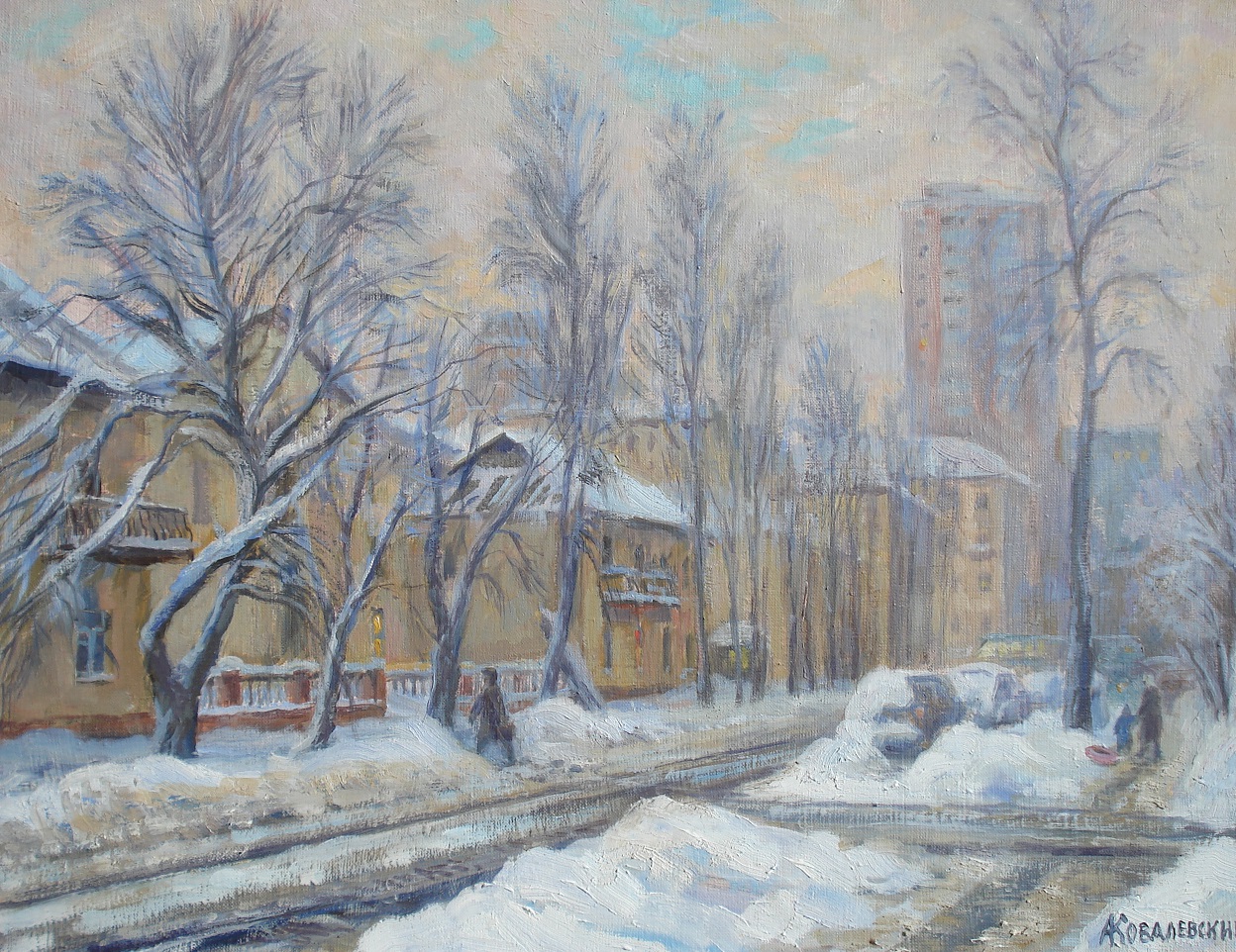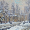 Wonderful street. Historical buildings constructed after the war. An organic combination of two-story houses, Stalin-era buildings, and high-rises. The sun is shining, winter in Moscow, the soul rejoices. I tried to convey the mood.