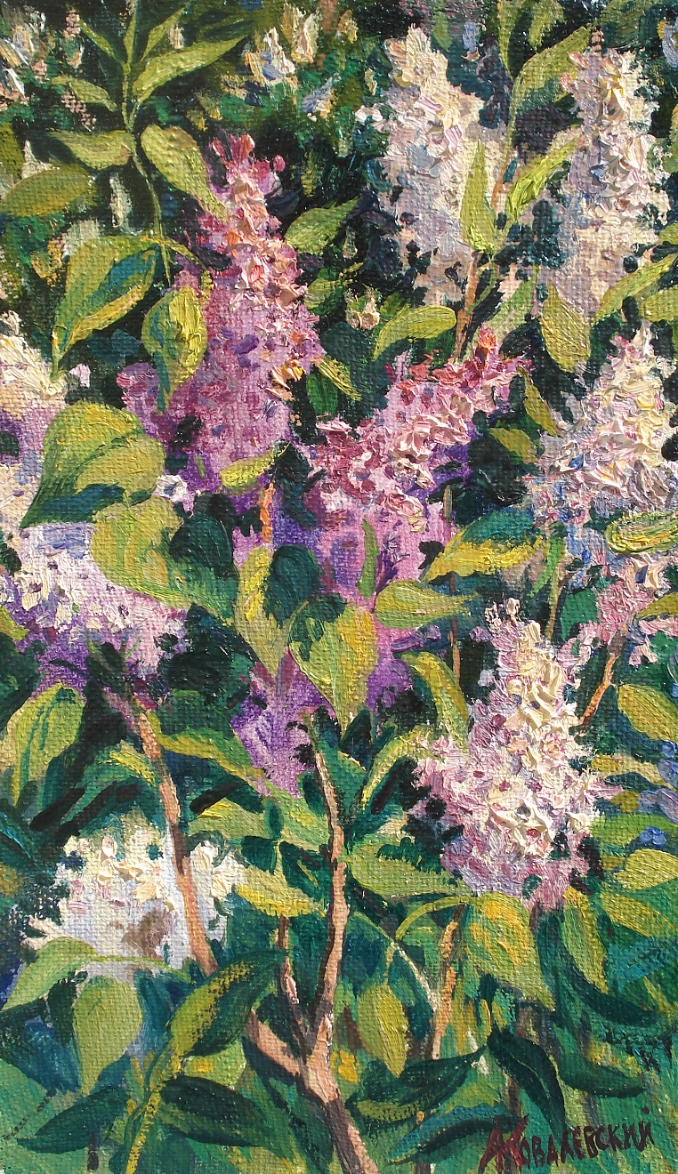 This original work «Lilac, Evening» was created by contemporary Russian artist Andrey Kovalevsky and is available for purchase online.