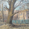 I was walking and saw an ancient huge poplar, and beneath it a puddle with a reflection. When I was painting, I added life with a local cat hunting crows. Life goes on...