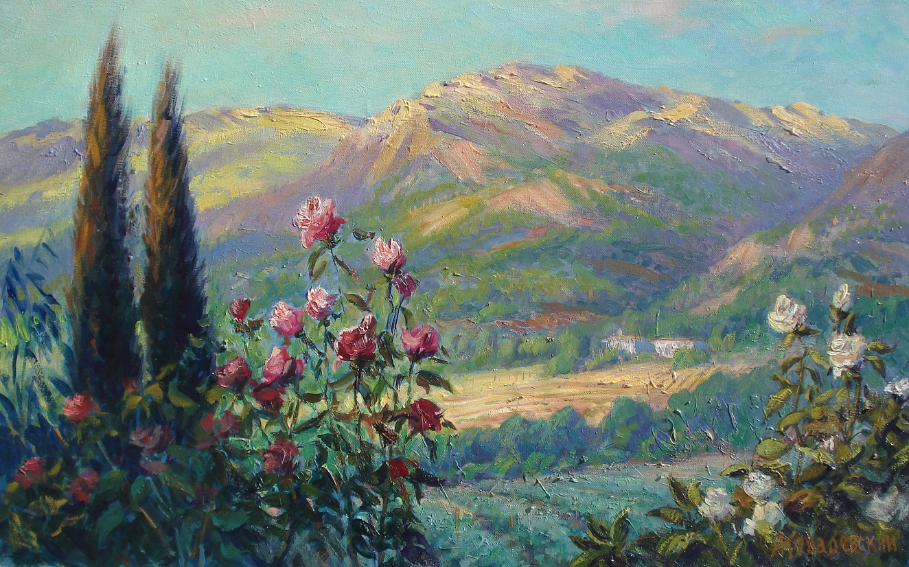 We spent last summer vacation in Crimea. Above Yalta, in Vasilevka, we stayed in a guest house. I was writing the sunrise for the second time. It’s fresh, everyone is sleeping, birds are singing, the air is fresh, the colors are shining – the south. Glad to share.